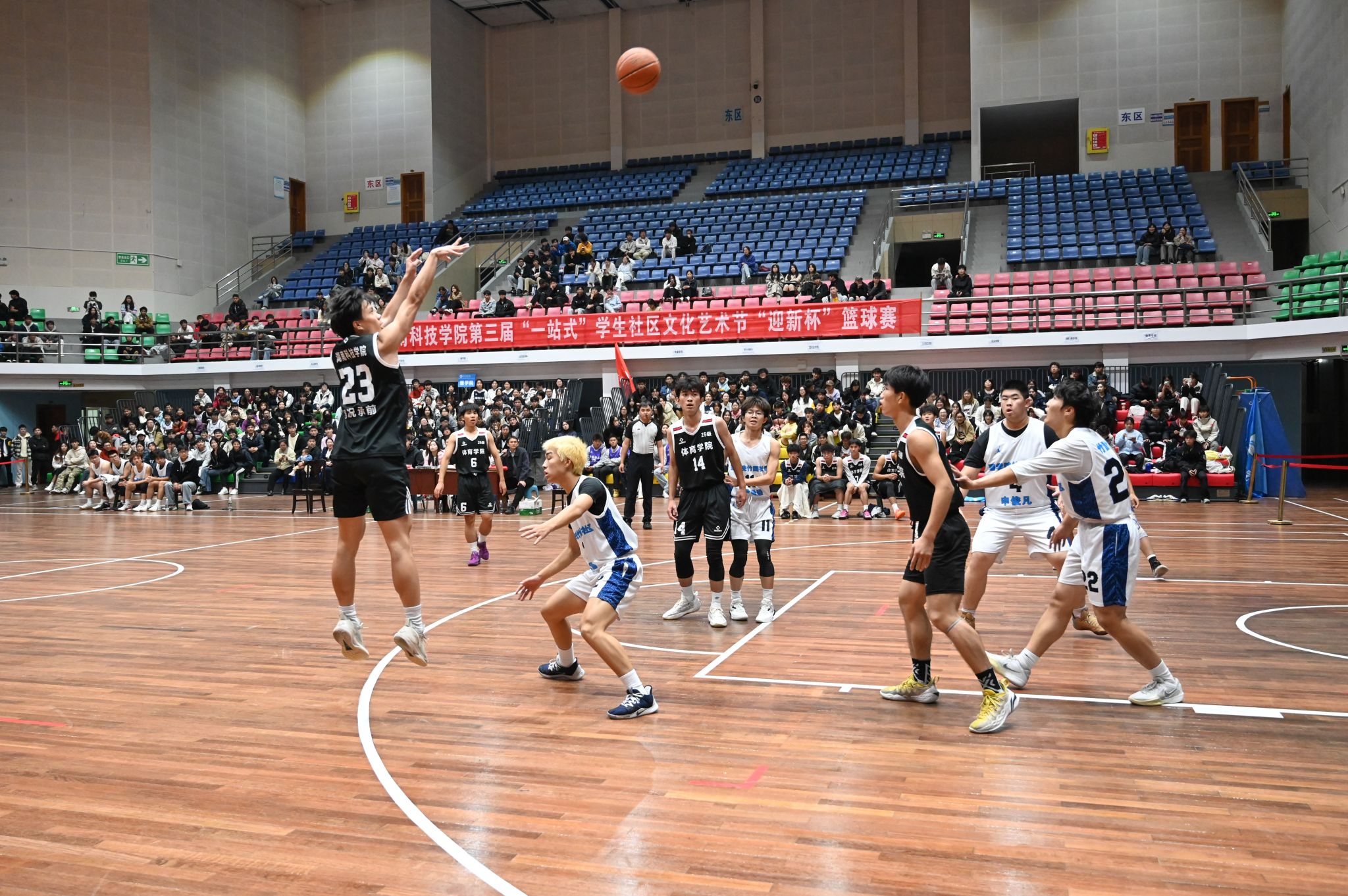本网讯(记者 万湘徽 摄影 杨芊澍)11月11日,学校体育馆内人声鼎沸、气氛热烈,第三届“一站式”学生社区文化艺术节“迎新杯”篮球赛正式开幕。校党委委员、副校长何福林出席活动,学生工作部、校团委、体育学院负责人,以及全校各学生社区参赛学生代表齐聚在现场,共同见证赛事启动。
