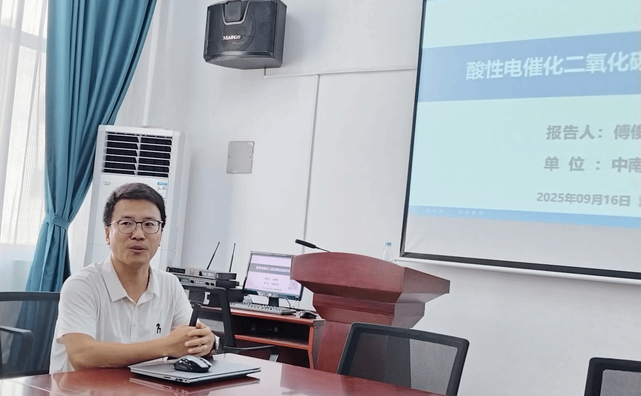 讲座中,傅俊伟教授以能源催化材料与器件是解锁可持续能源未来的核心引擎为开篇,深入浅出地介绍了酸性电催化CO₂还原领域的研究价值与挑战。随后,他介绍了其在该领域近五年的核心研究进展,目前已成功实现大电流下器件的长时间稳定运行,为酸性电催化CO₂还原技术走向工业化奠定了科学基础。