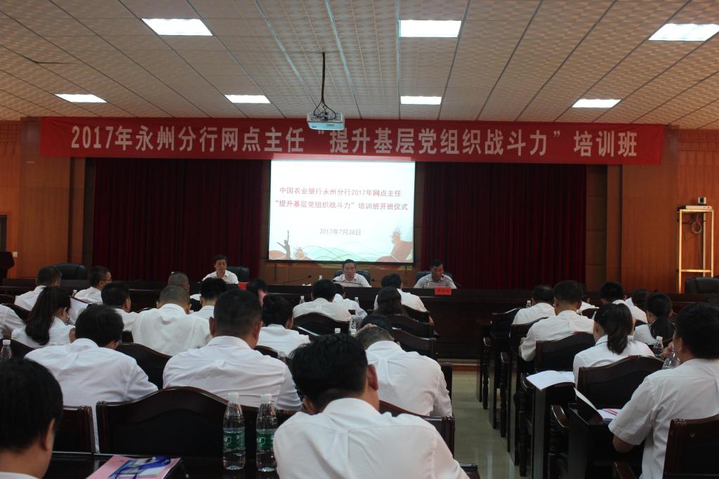 基层党建培训分别以“落实一岗双责”和“提高基层党组织战斗力”为主题,培训对象为永州分行各支行的行长及网点主任等。此次培训主要由课堂讲授、分组讨论、基层党建实务操作与观看警示教育片组成。培训期间,马克思主义学院邀请了周小毛、张京华、唐森树等专家学者为农行永州分行参训学员作专题讲座,深入解读了十八届六中全会精神、新形势下全面从严治党重要部署等党的重要理论、方针。