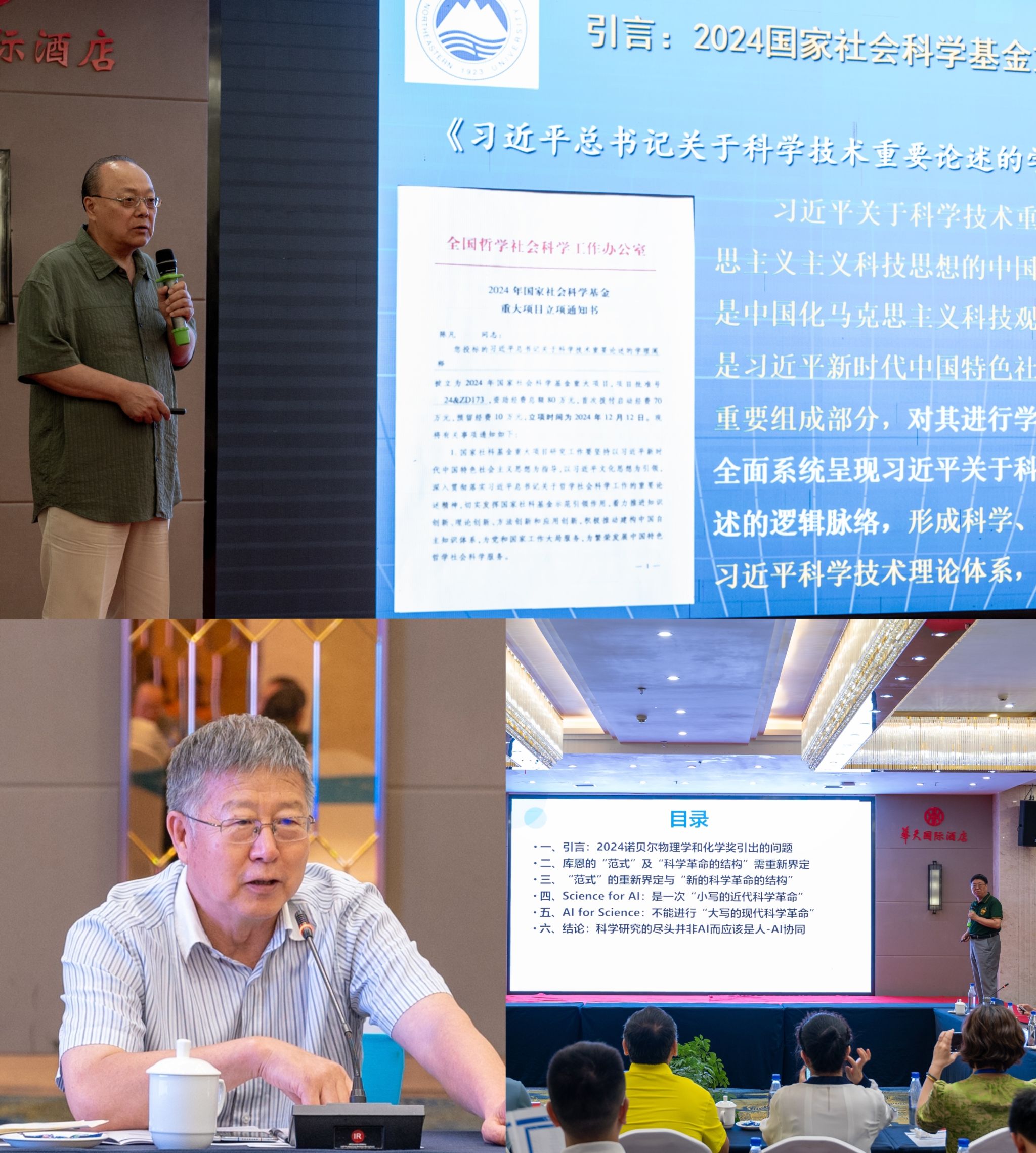 随后的专家主旨发言精彩纷呈。东北大学陈凡教授深入解读了习近平关于人工智能创新论述的科技伦理观;山西大学高策教授结合产业案例,提出技术创新需与产业升级节奏相匹配;华南师范大学肖显静教授认为 AI 能推动 “小写的科学革命”,却无法引发 “大写的科学革命”,人类在科学革命中仍不可替代。人民大学林坚、国防科技大学曾华锋、华南理工大学吴国林等专家也围绕数智社会文明形态、制脑权、量子诠释学等前沿议题展开了跨界对话。