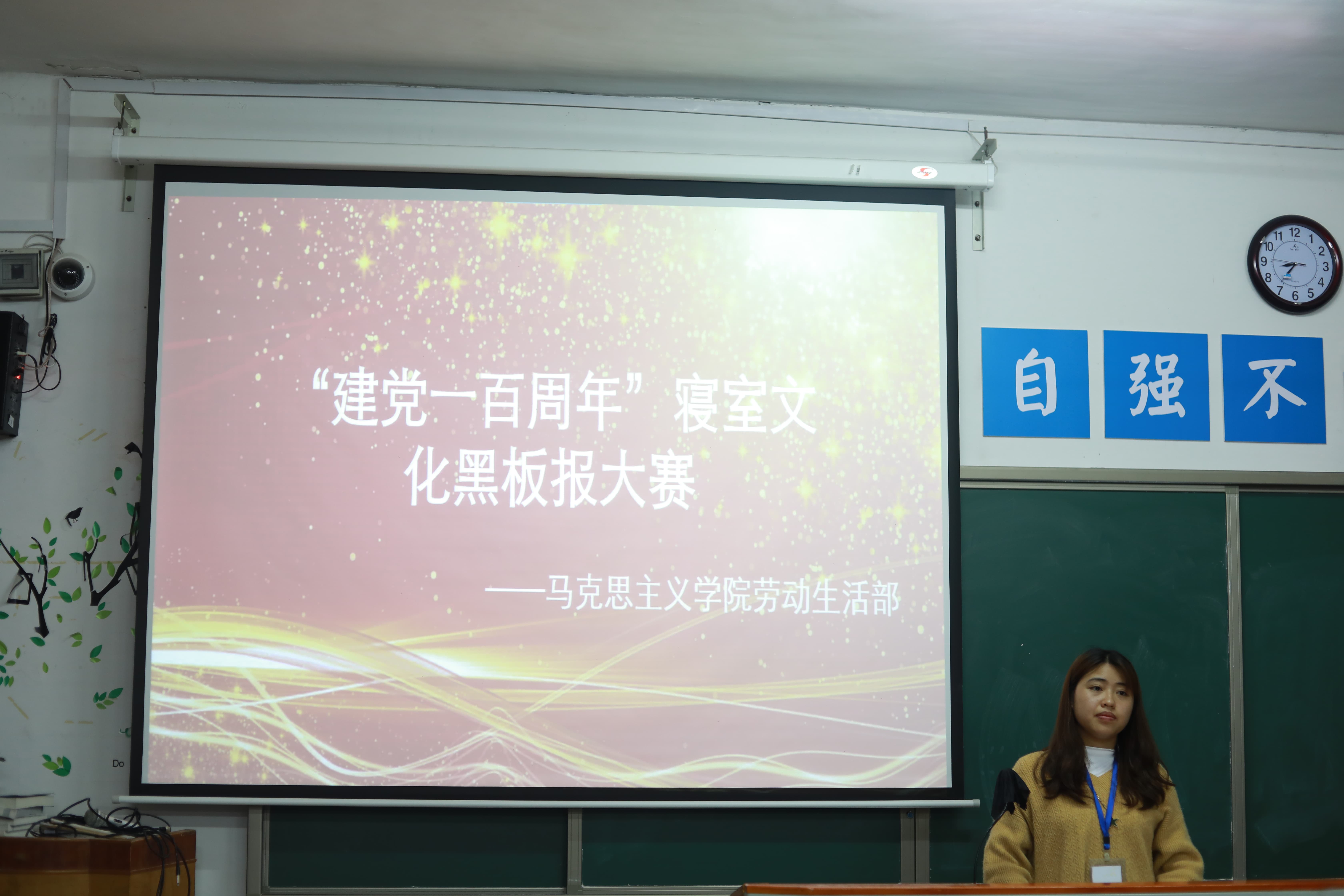 本网讯(通讯员 吴祖琳)为庆祝中国共产党成立一百周年,5月19日,马克思主义学院于鹤鸣楼501教室举办了“建党一百周年”主题黑板报比赛。