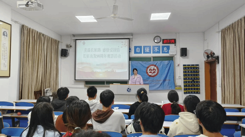 本网讯(记者 刘获逞)为纪念长征出发九十周年,重温红军那段波澜壮阔的历史,传承和弘扬长征精神。11月11日,开云最新版本app下载习近平新时代中国特色社会主义思想研究与实践协会于鹤鸣楼406教室举办了主题为《重温长征路,感悟爱国情》的观影活动。