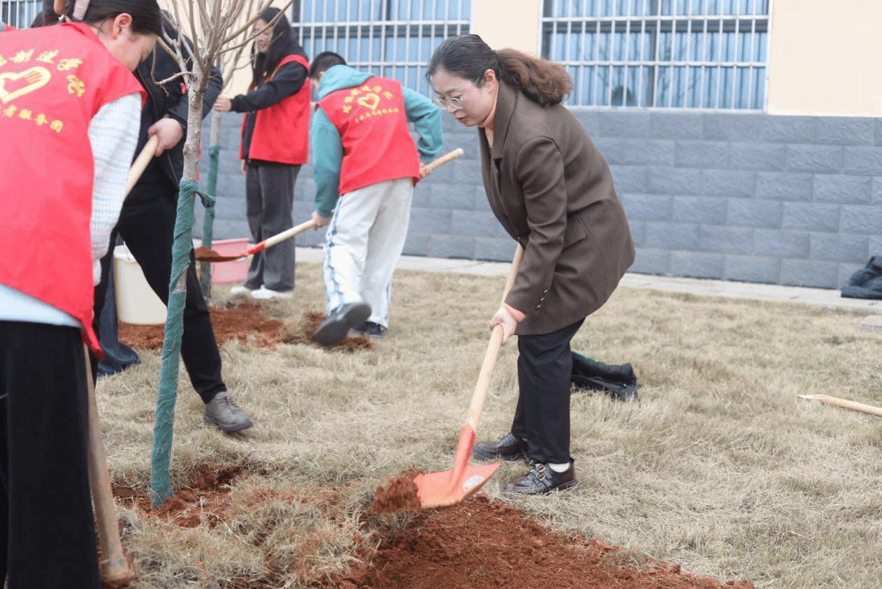 本网讯(记者 易淑妍)为强化同学们的环保意识,激发投身环保行动的热情,3月11日下午,开云最新版本app下载于小田径场旁举办了植树节劳动实践活动,马克思主义学院党总支书记陈玉皎、党总支副书记高丹、学生党支部书记曹惠如等带领党员、青年志愿者共同为校园添绿。