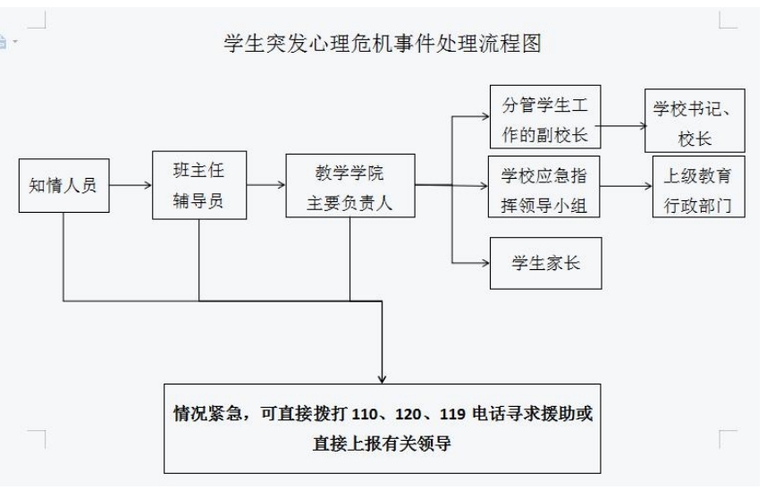 1.知情人员在保障自身和危机学生生命安全的前提下,力所能及的开展疏导和干预工作,并及时将情况向教学学院报告。