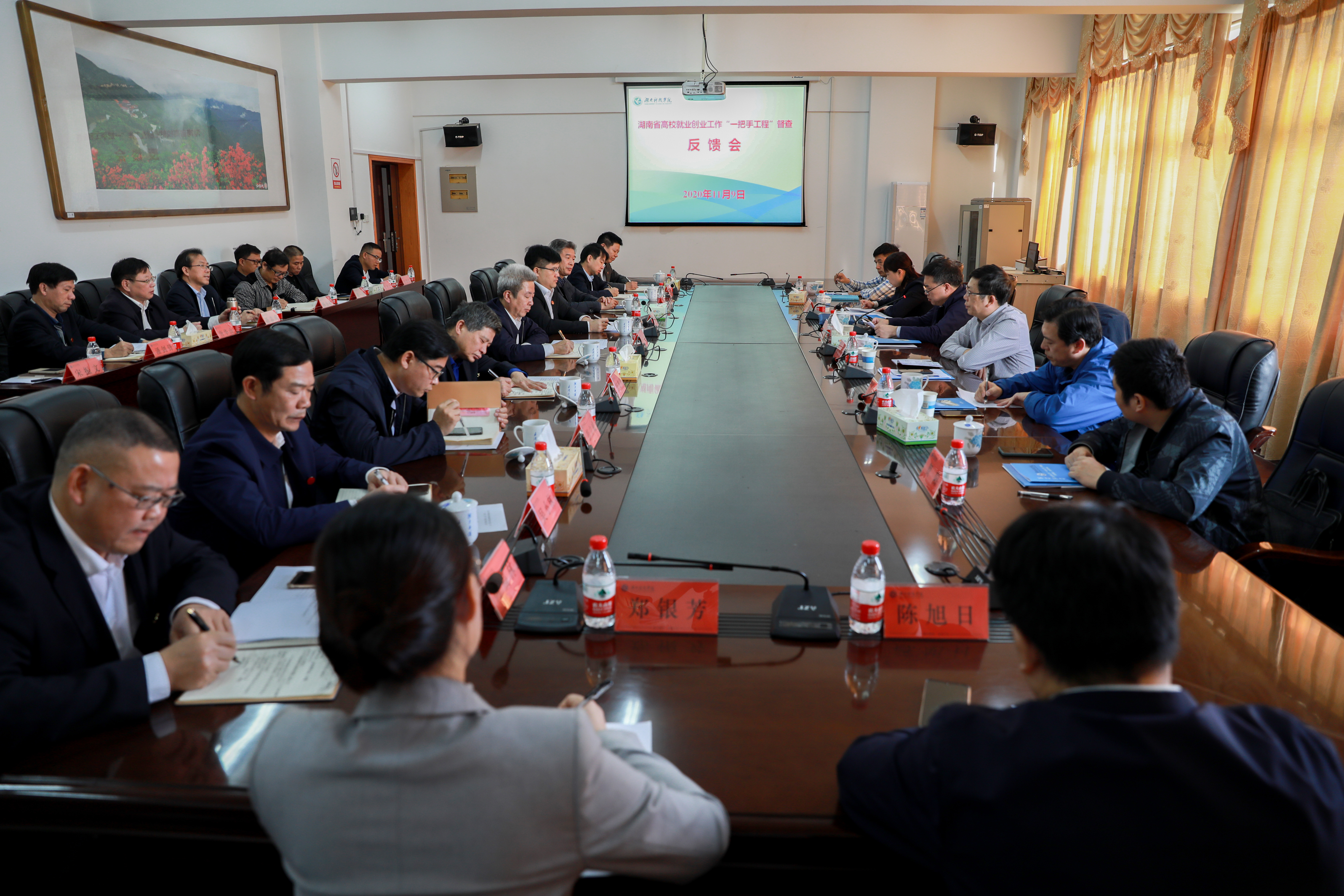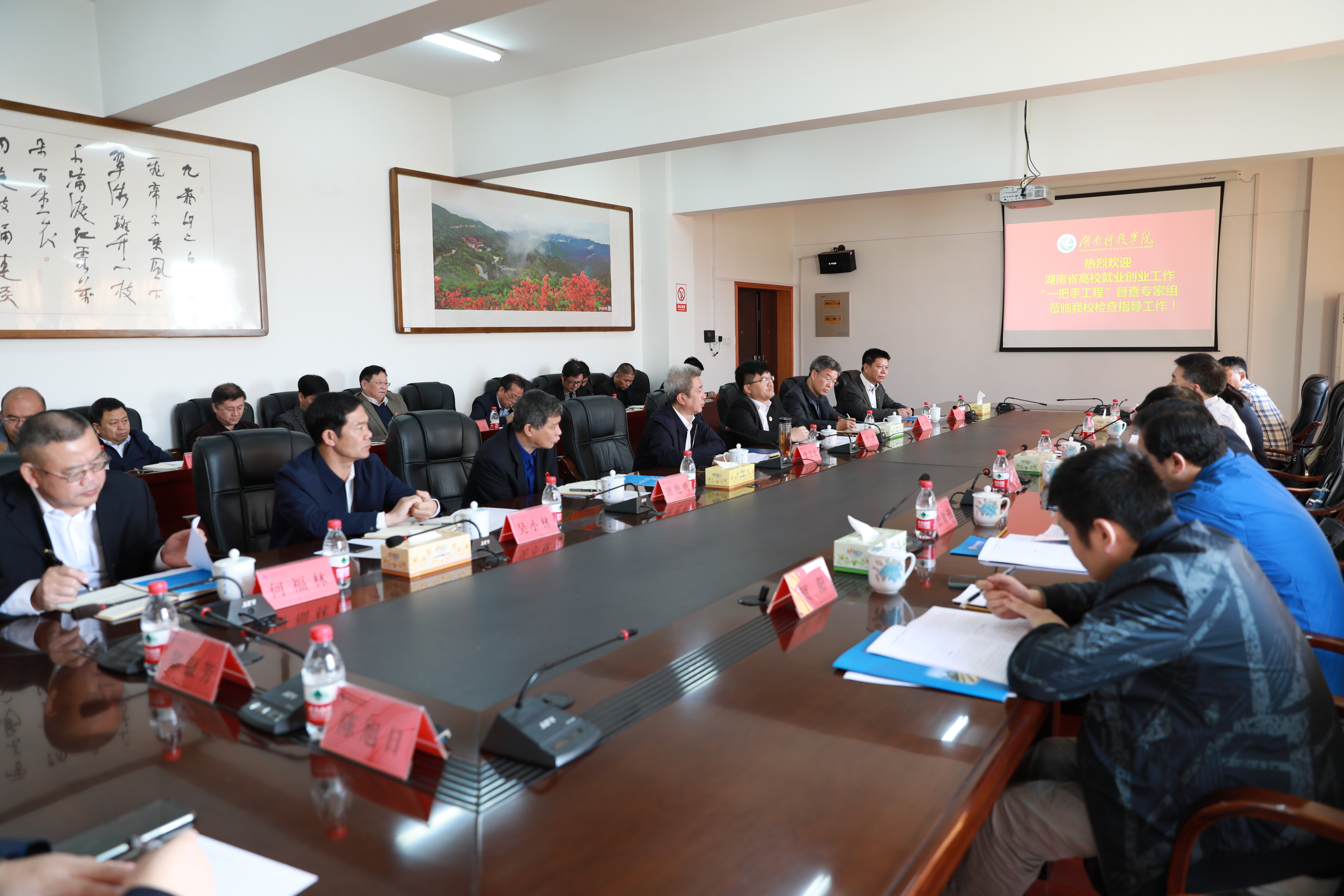 本网讯(记者 刘兰 邓洁 实习记者 胡鑫 周秋珍)11月9日,根据省教育厅相关文件布署,以长沙环保职院党委书记吕文明为组长的专家组一行6人来校,对我校就业创业工作“一把手工程”进行督查。校党委书记曾宝成,校长李钢,校领导唐艳明、宋宏福、彭立威、李常健、吴小林、程智开,党委委员、组织部部长何福林出席会议。