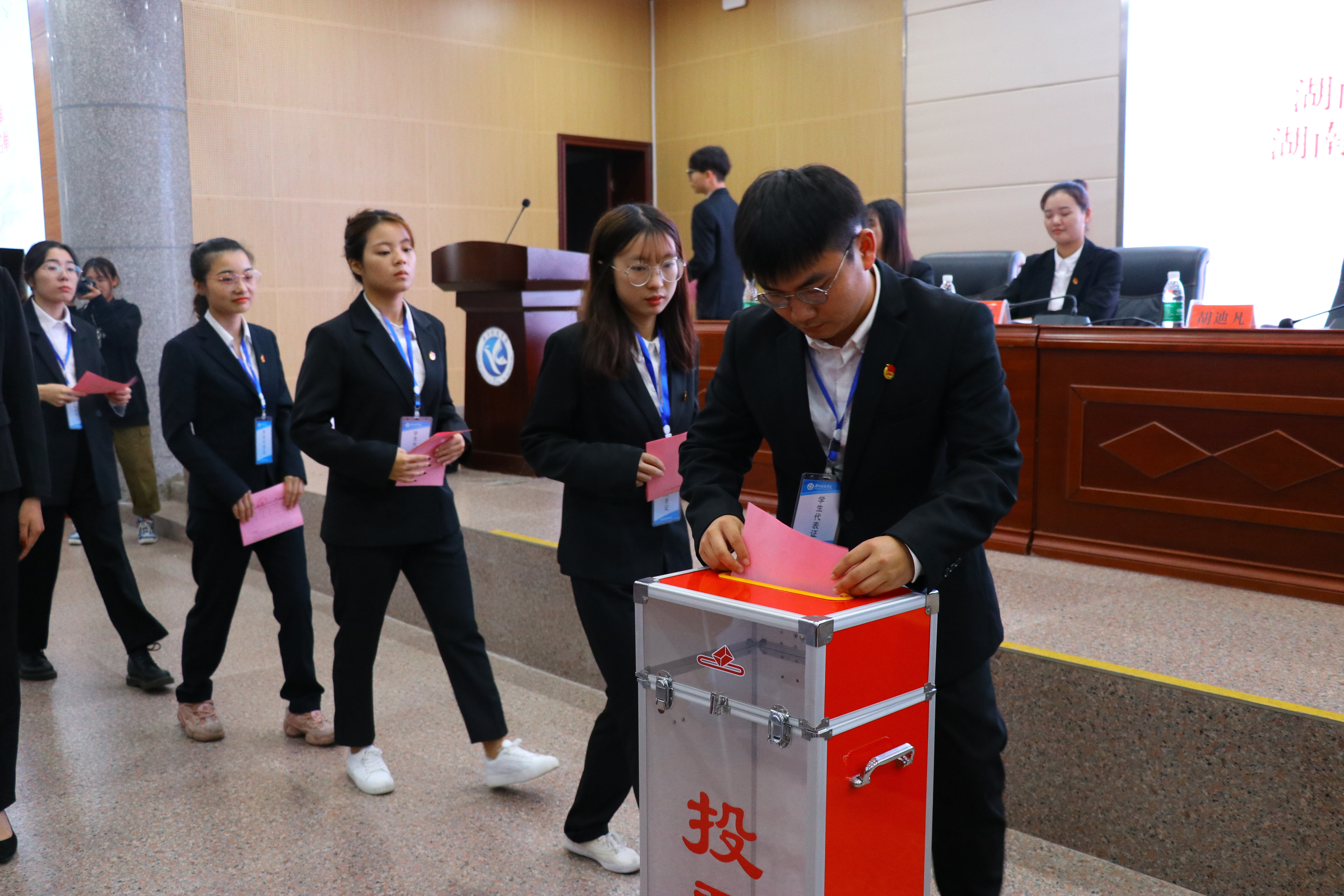 大会还选举产生了第四届学生委员会委员和第四届学生委员会主席团,马兴中等20名同学当选新一届学生委员会委员。其中,美术与艺术设计学院颜玉睿、理学院翁家威、化学与生物工程学院彭俏、体育学院黄祖浩、人文与社会科学学院王慧君等5名同学当选为新一届学生委员会主席团成员。