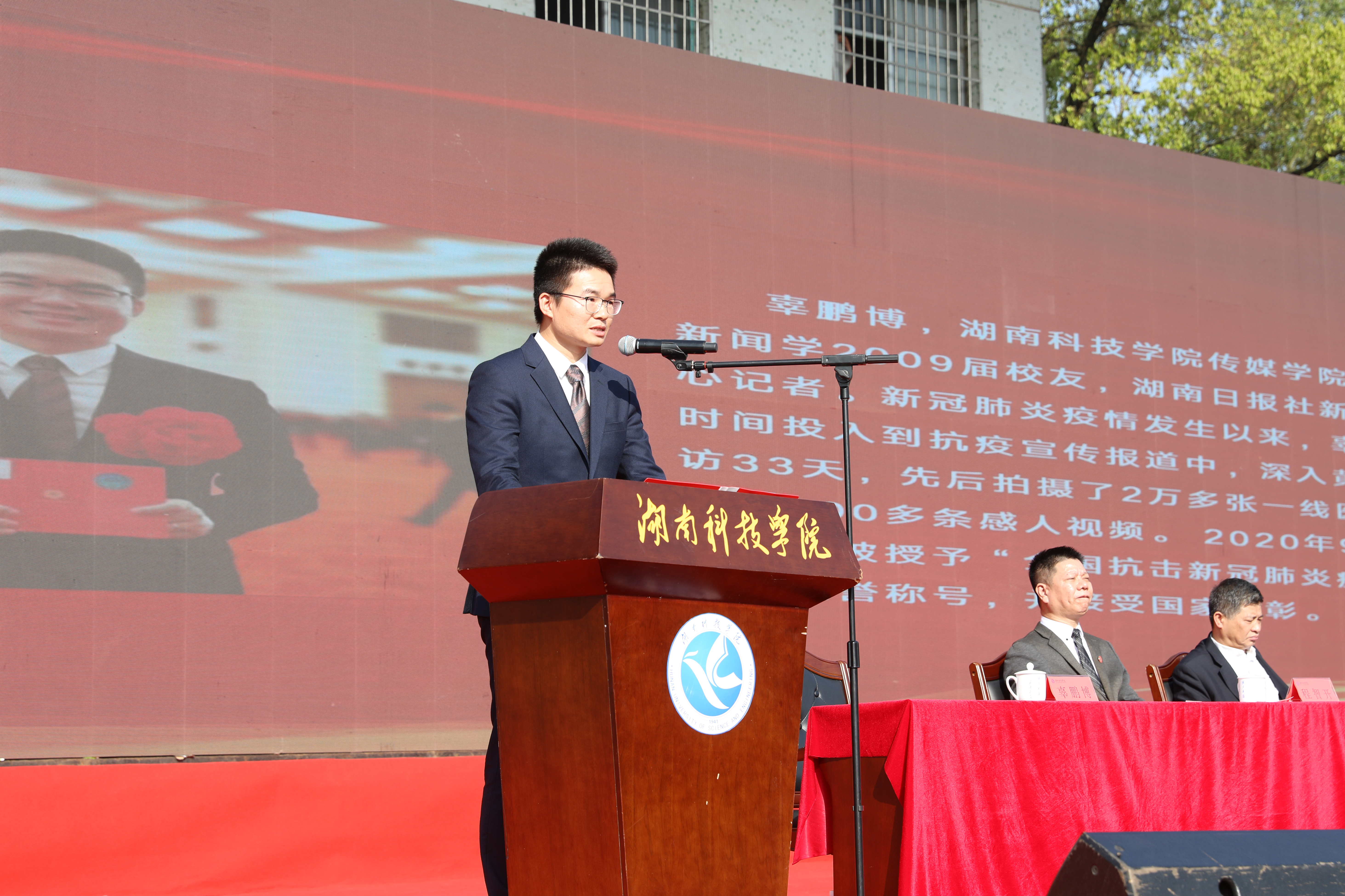 学校还特邀2009届校友、全国抗击新冠肺炎疫情先进个人辜鹏博回校,他向全体新生分享了自己的战“疫”故事。作为战“疫”一线的逆行者,他从大年初一开始,深入抗“疫”一线连续采访33天,先后拍摄了2万多张一线医务人员照片,300多条视频,见证用生命捍卫生命的战“疫”时刻。他告诉希望学弟学妹们机会属于每一个努力的人,每一份努力都是机会的铺垫,要有敢做敢拼的精神,珍惜生活中每一次经历,珍藏每一份感悟,多一份纯粹与天真,争做时代的奋进者、开拓者和领跑者。