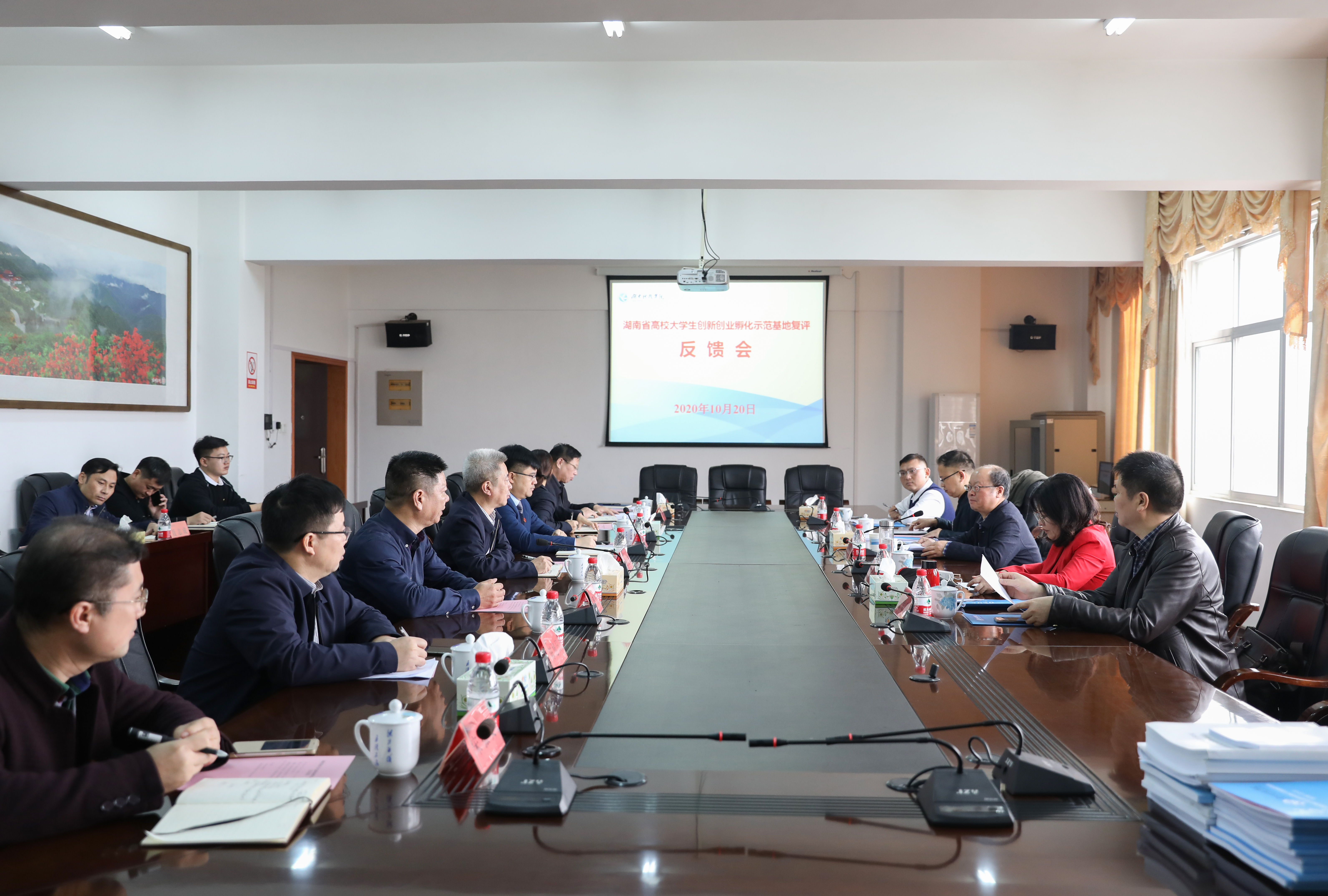 本网讯 10月20日,按照省教育厅布署,以湖南信息职业技术学院院长陈剑旄为组长,湖南商务职院副院长禹明华、湖南工业职院招生就业处处长孟正文、湖南化工职院招生就业处处长汪发亮、湖南省就业指导中心事业发展部部长王彬组成的评审专家组一行五人来校,通过听取汇报、实地考察、召开座谈会、查阅资料、专家合议、反馈意见六个环节,对我校大学生创新创业孵化示范基地进行考察复评。校党委书记曾宝成、校长李钢、副校长程智开出席会议。