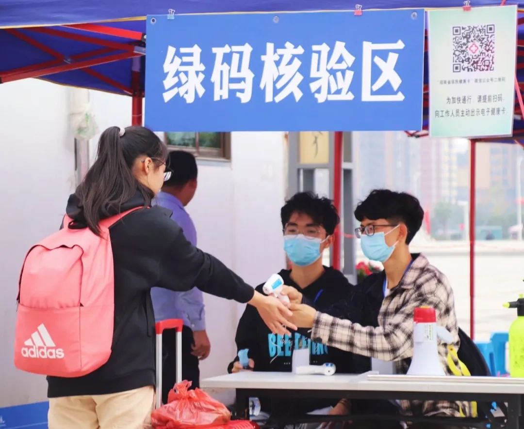 “以家人之名,拥抱来自天南地北的你”“亲爱的同学,你充值的科院时光已到账”“你的科院,现在开始由你定义”。校园里随处洋溢着喜迎新同学的热烈氛围。在东大门处,2020级新生在工作人员的引导下有序入校报到。测量体温、核验身份、出示“通行证”,细致周到的入校检验为新生的健康安全保驾护航。在火车站、汽车站、学校各报到点,负责迎新工作的老师、工作人员和志愿者们引导新生快速办理手续,或热情洋溢介绍校园生活,或为新生和家长搬运行李办理登记,或为新生和家长递上科院的第一杯热茶,各个细节中无不透露着满满的走心与温暖。