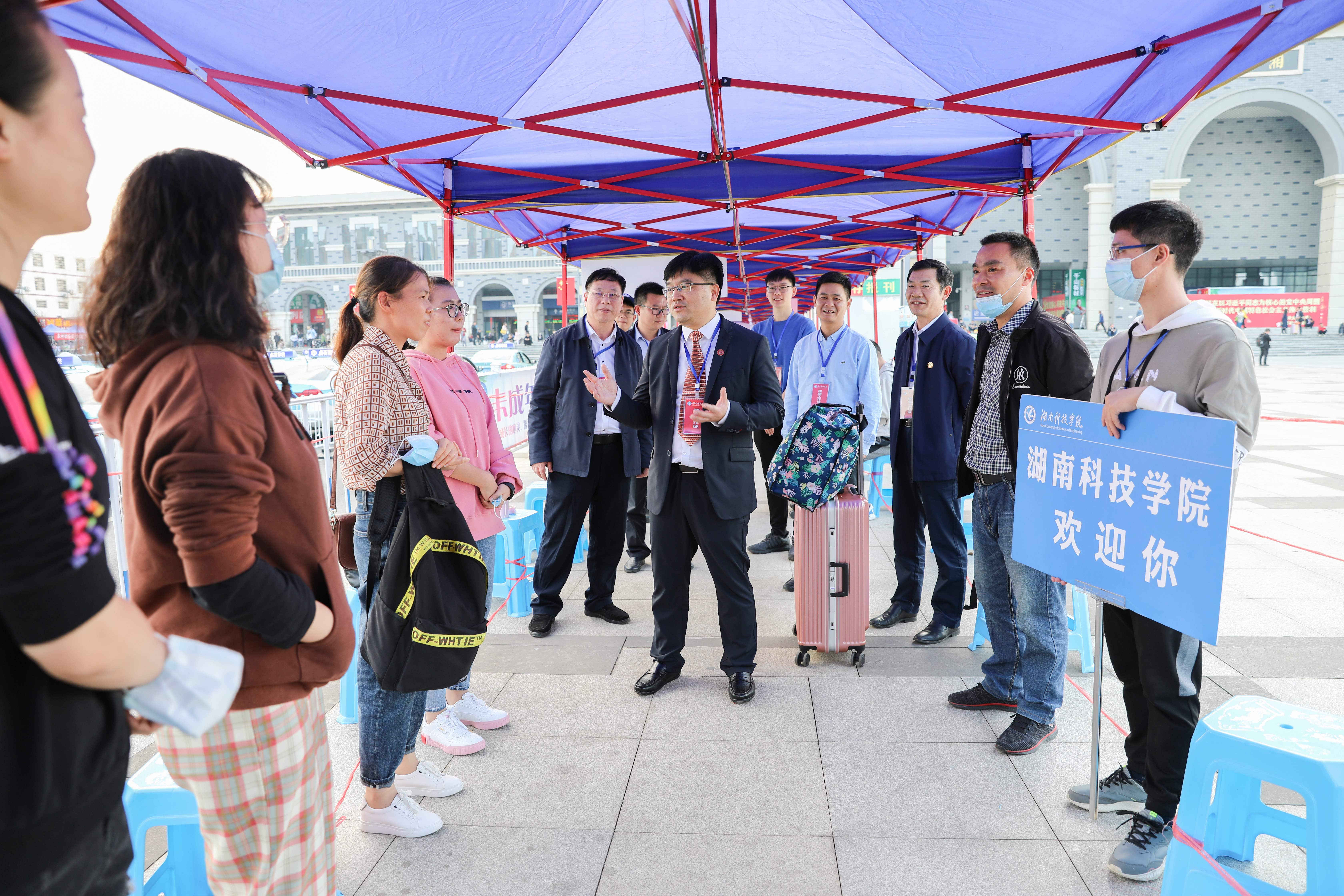 走访过程中,校领导先后来到了14个教学学院迎新报到处,看望参与迎新工作的师生们,详细询问新生报到情况,了解接待服务流程,查看迎新工作最新进展。校领导还专程来到了永州火车站和汽车北站,看望慰问迎新一线的工作人员,与正在等车的新生和家长进行交流,对他们的到来表示热烈的欢迎。