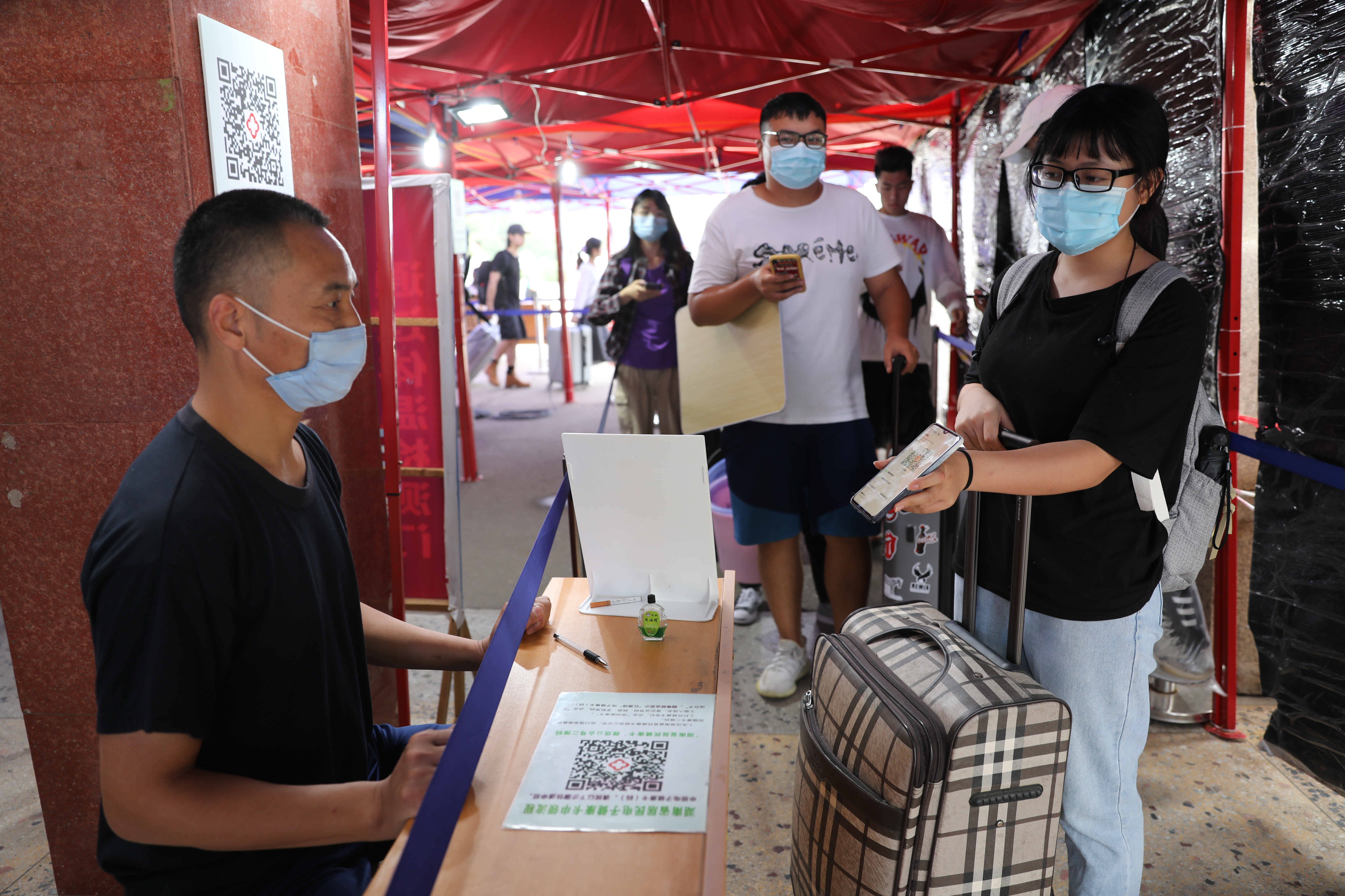 “返校全流程,非常顺畅!”“许久未见,甚是想念!”即使佩戴着口罩,同学们的眉眼中依旧流露出重返校园的欣喜。
