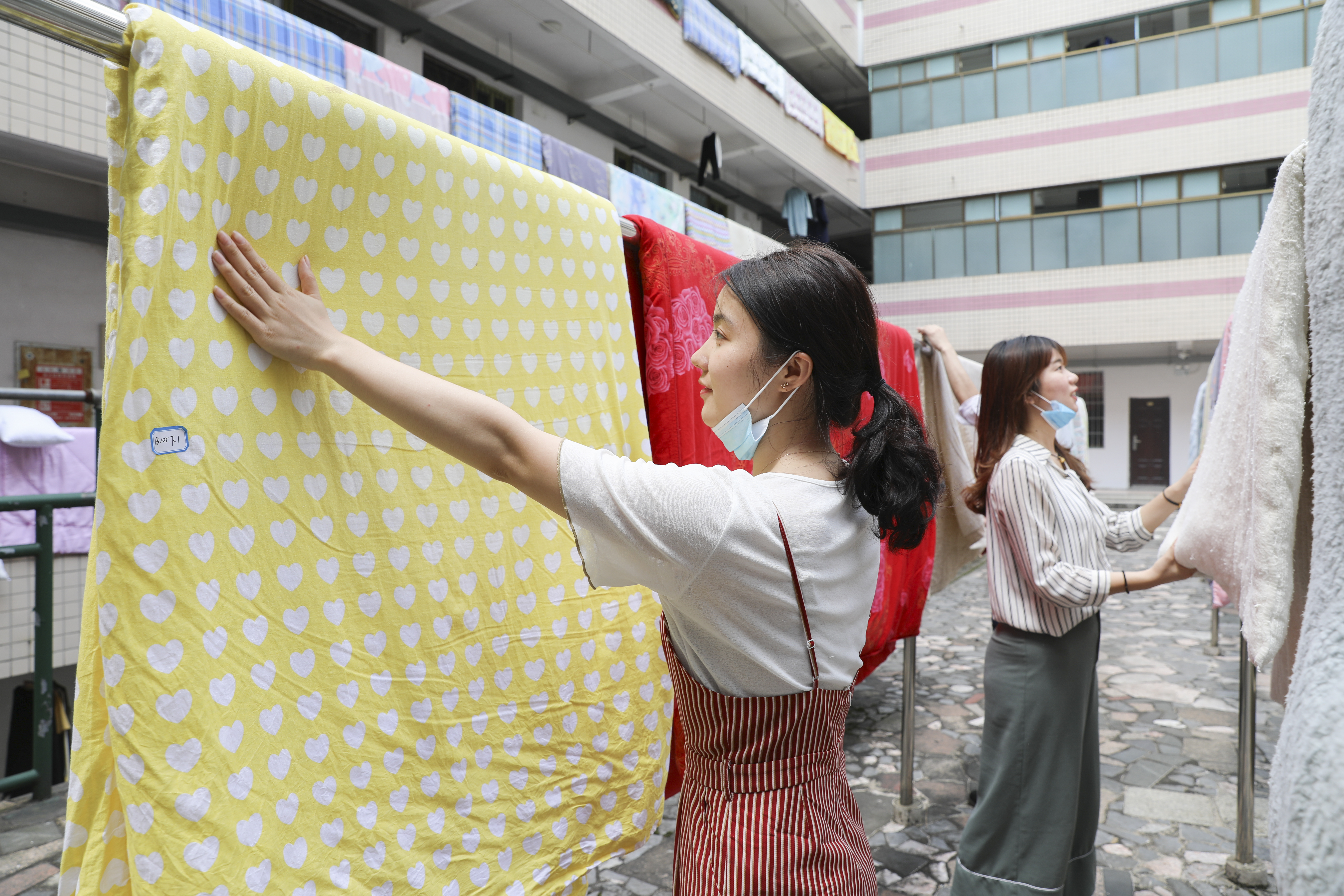 本网讯 近日, 我校上演了一场暖心大行动,各学院的班主任、辅导员纷纷拿起拖把、扫把、清洁剂、地板刷等清扫物品走进学生公寓,进行通风消毒、寝室大扫除、洗床单、晒被子等,做好开学准备工作,迎接学生归来。
