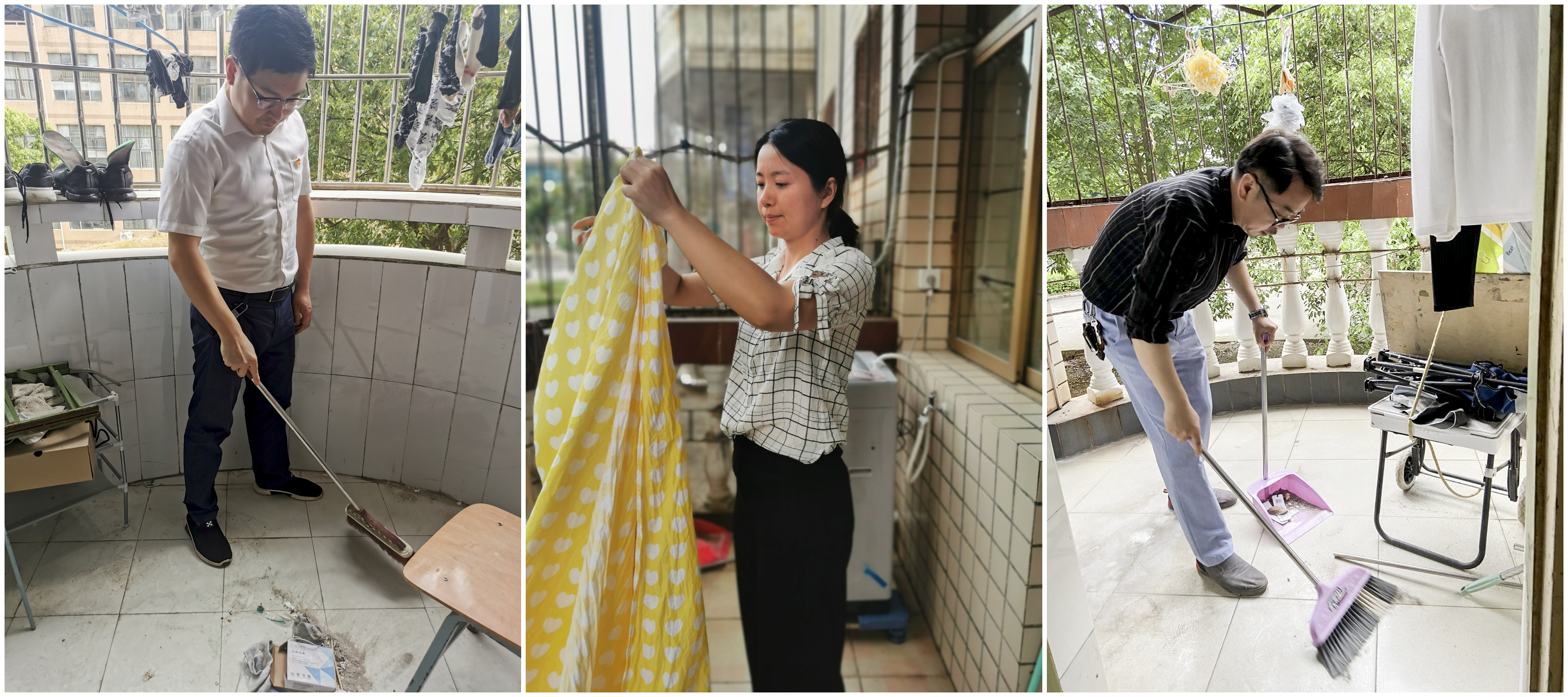 这场暖心大行动并不是“盲目”的。学工部工作人员介绍,最开始的计划是打扫全部宿舍,但考虑到涉及学生的个人隐私等问题,辅导员通过打电话和发信息,向学生征求个人意见,开启“云接单”模式,学生以寝室为单位向老师发出“订单”,比如:是否需要晒被子和洗床单,重点清扫寝室的哪些区域,有哪些特别事项等等。