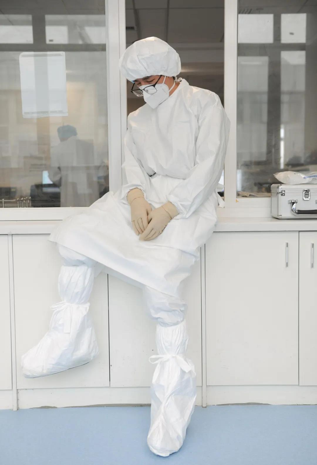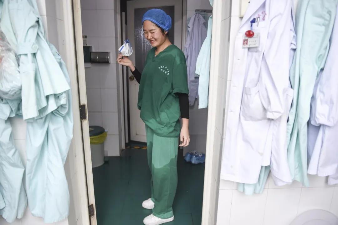 2月3日19时15分许,抢救结束后,护士康丹的手术服几乎被汗水湿透。