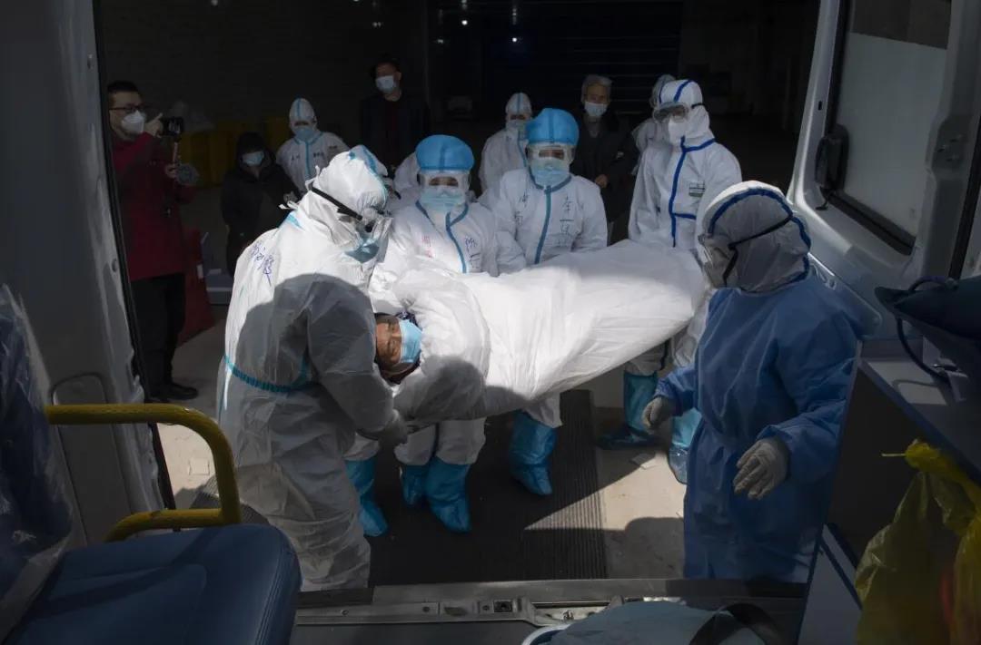 3月17日,湖北省黄冈市大别山区域医疗中心,湖南支援黄冈医疗队队员们合力将一名患者转送上救护车。这名患者新冠肺炎已治愈,因有其他基础性疾病,转到黄冈市中心医院老院区继续治疗。