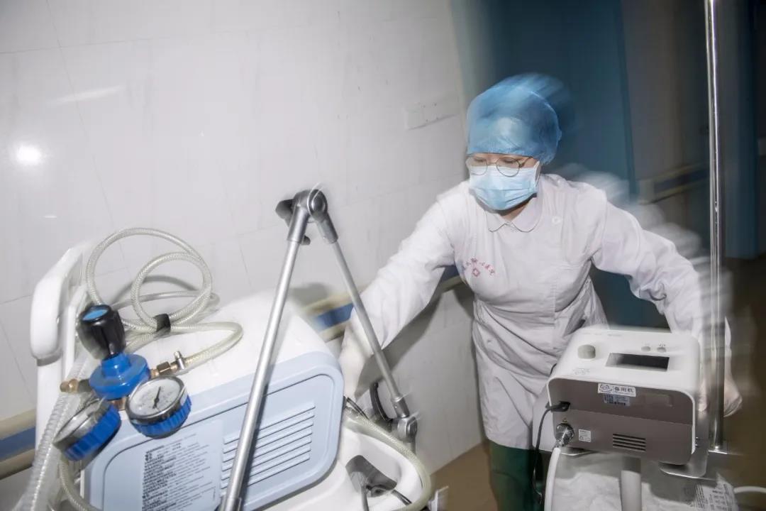 3月4日凌晨2时许,湖北省黄冈市大别山区域医疗中心,护士王曼仔细观察危重病人情况。