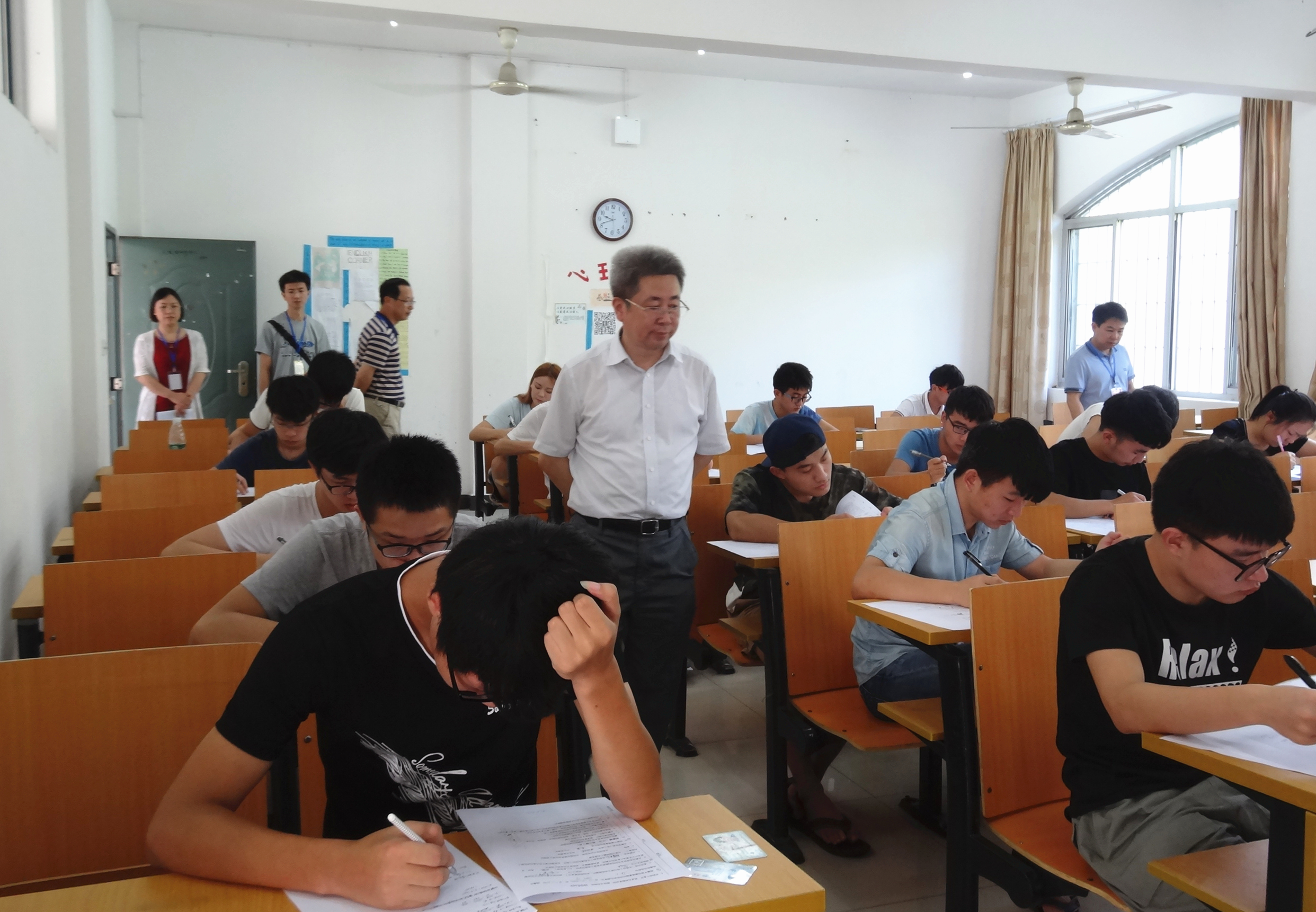 本网讯 7月3日上午,校长曾宝成等校领导深入各学院和各考场督查组考工作和考风考纪情况,副校长李常健、教务处处长石循忠等陪同督查。
